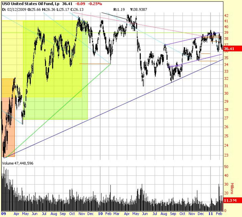A close examination of the chart below can significantly aid the portfolio manager and the trader in the management of their market position analysis and responsibilities and their resasonable forecasts in the USO ETF, and related ETF's, and commodity futures, and indexes with an emphasis on seasonal and historical conditions and historical price patterns... and echovectors.
