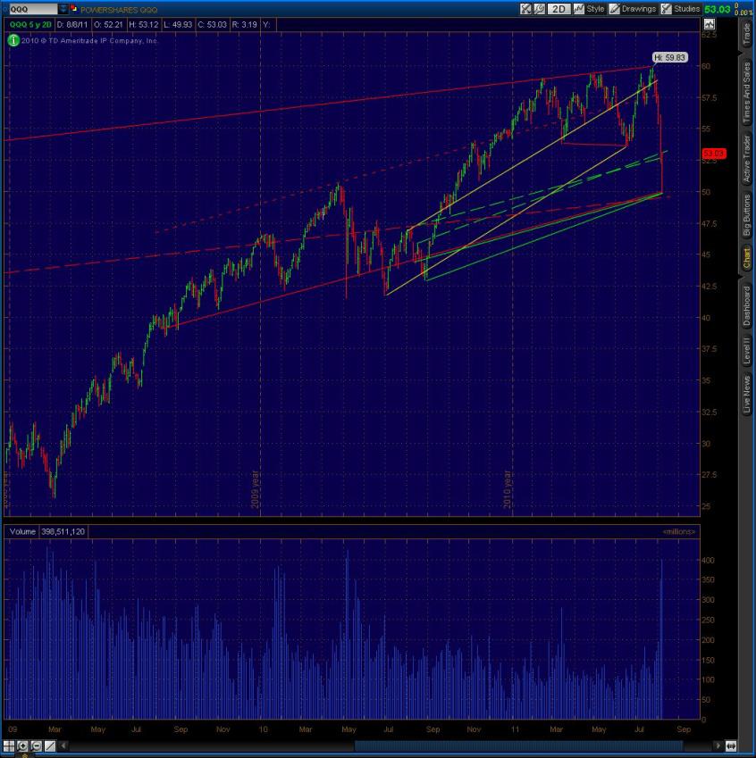 SUPPLEMENTAL UPDATE TUE 8:30AM EST 10 August 2011: Regarding short-term downside trend. See the QEV Wave Pattern Signal Guide and significant EBDs (EchoBackDates) and ETDs (EchoTradeDates) by clicking on the EASYGUIDECHART Button in header above.